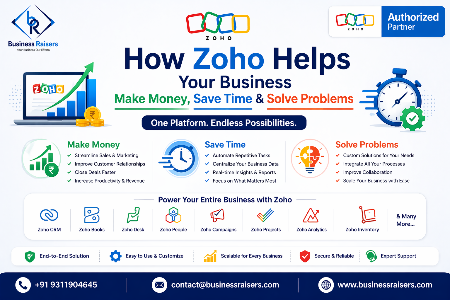 We implement the Zoho apps most relevant to your business — all connected, all automated, all visible from one dashboard.
